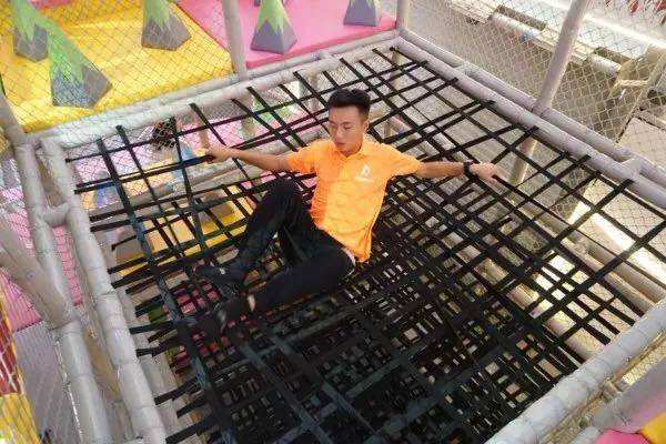 火爆抖音的粘粘樂蹦床,穿上特制服裝,用力往墻上跳,讓你感到身體騰空的掛住的感覺