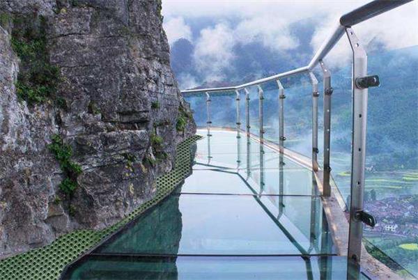 在玻璃上面行走,而玻璃下就是萬丈懸崖,有的景區(qū)的玻璃棧道還會隨腳步制造出玻璃碎裂假象,很刺激有目有?玻璃棧道比較有名的有:天門山玻璃棧道,張家界大峽谷玻璃橋,保定狼牙山玻璃橋,石牛寨玻璃橋,其中石牛寨玻璃橋是目前世界上最高的玻璃橋,高達180米,全長300米左右。