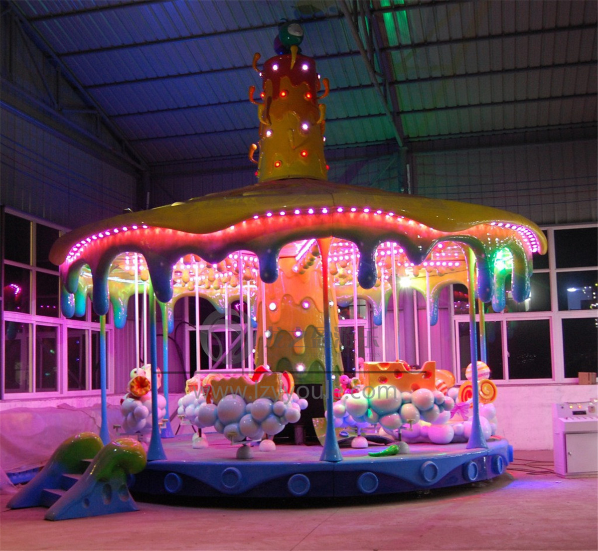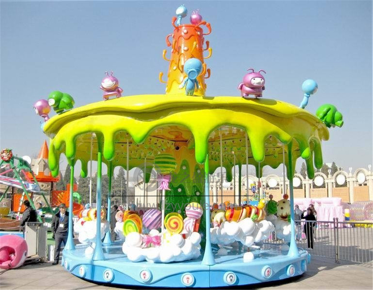 1、蟲蟲卡通轉(zhuǎn)馬是由本廠獨(dú)立設(shè)計(jì)開發(fā)生產(chǎn)并擁有22項(xiàng)國家專利的一種非刺激性游樂設(shè)備,他擁有漂亮絢麗的外形和燈光,可供21個(gè)人同時(shí)乘坐。卡通世界一樣炫目的顏色特別是到了晚上,蟲蟲轉(zhuǎn)馬的燈光全部打開,就好像我閃閃發(fā)光的瑩火蟲一樣,夢幻而美好!特別吸引人們的目光!